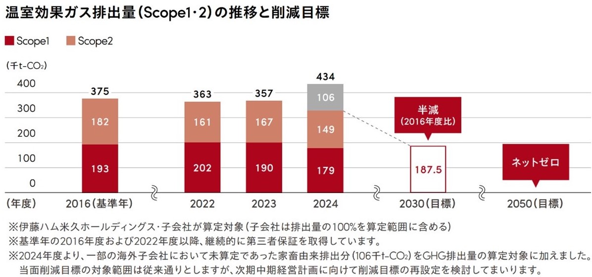 ※集計対象範囲:伊藤ハム米久ホールディングス㈱と国内連結子会社を対象としています。なお、子会社は排出量・使用量の100%を算定に含めています。